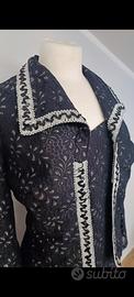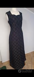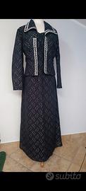 Splendido completo vintage anni '60/'70 composto da abito lungo fino a terra smanicato e giacca coordinata. Realizzato in pregiato tessuto Helanca nero con lavorazione a pizzo e dettagli argento scintillanti. La giacca presenta rifiniture ricercate con passamaneria e paillettes nere su base argento. Condizioni: Ottime, come da foto. Segnalo paillettes in l'ultima foto da sistemare!!!! Dettagli: Tessuto elasticizzato, scollatura a cuore, taglio elegante. Misure (visibili in foto): Lunghezza abito ~143cm, Lunghezza giacca ~51cm. Perfetto per cerimonie, serate eleganti o per collezionisti di vintage autentico. 🇬🇧 Stunning 1960s/70s vintage two-piece set featuring a sleeveless maxi dress and matching jacket. Crafted from authentic black Helanca fabric with a delicate lace pattern and shimmering silver accents. The jacket is embellished with beautiful silver braiding and black sequins. Condition: Excellent vintage condition. Show the glitter in the last photo of the system Features: Stretchy and comfortable fabric, sweetheart neckline, elegant fit. Measurements: Dress length approx 143cm, Jacket length approx 51cm (see photos for details). Ideal for special occasions, gala nights, or vintage fashion lovers. 🏷️ #vintage #helanca #vintageset #eveningdress #blacklace #cerimonia #anni70 #70svintage #abitodasera #coordinato #vintagefashion #silverdetails #chic #partywear #vintageelegante #dalarmadiodimamma #abitoelegantevintage #cerimoniavintage #pizzovintage #paillettesvintage #cerimoniadonna #mammadellasposa #mammadellosposo #abitomatrimonio #abitoelegante #abitomaxi #maxilungo #abitosartoriale #sartorialevintage #capovintageoriginale #sartoriavintage #robeélégantevintage #annees60 #annees70s #vintageoriginal #anni6070 #jahre60 #jahre70 #langesvintagekleid #formellekleidung #vintagezeremonienkleid46