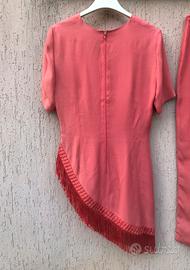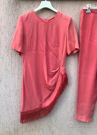 Vendo bellissimo completo vintage elegante composto da pantalone vita alta + casacca con frange asimmetrica in stupendo color salmone/corallo TG. 42 del magnifico brand LUISA SPAGNOLI, in ottime condizioni generali.