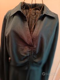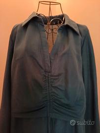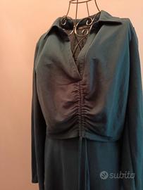 Completo camicia e casacca verde petrolio di Zara. Indossato solo una volta, in ottimo stato. Veste una 44 ma anche una 46 perché ha una linea morbida, il pantalone è in modello palazzo con elastico. Slancia la figura e ha una bella vestibilità. Da notare il modello particolare della casacca con arricciatura sul davanti.