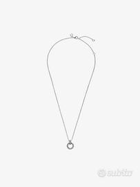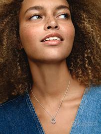 Esalta il tuo stile con la Collana e Pendente Cerchio Doppio di Pandora, un gioiello che unisce eleganza e versatilità. Realizzata in Argento Sterling 925, questa collana presenta un pendente formato da due cerchi intrecciati: il cerchio superiore è ornato da una scintillante fila di zirconia cubica incolori e dal logo Pandora inciso, mentre il cerchio inferiore, mobile e raffinato, offre due design in uno. Da un lato, scintilla con un pavé di pietre, dall'altro affascina con delicati cuori intagliati. Perfetto per chi ama trasformare il proprio look con un semplice gesto, questo gioiello rifinito a mano è una celebrazione della qualità e dello stile senza tempo.