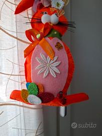 Coniglio dietroporta. Morbido. hande made. rifinito in maniera impeccabile. Con nastrini e applicazioni.