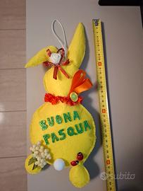 Coniglio dietroporta. morbido. hande made. Realizzata interamente a mano con cura e precisione. Con nastrini e applicazioni. Arriverà con cartellino e ben confezionato per eventuale regalo. Ne ho altri nel mio armadio. Possibilità di creare un set.