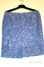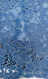 Bellissimo completo in pizzo azzurro, composto da giacca e gonna.