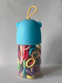 Pratico e super carino contenitore porta elastici con tappo a forma di orsetto azzurro