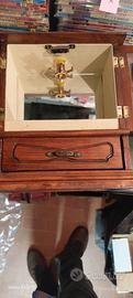 Elegante porta anelli vintage con finiture in legno e dettagli in vetro. Ideale per organizzare i tuoi gioielli.