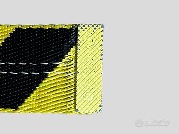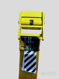 Cintura Off-White iconica stile “Industrial”, colore giallo/nero con fibbia gialla logata.