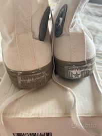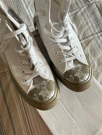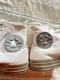 • Converse all star modello Chuck Taylor alte, colore bianco e dettagli argento