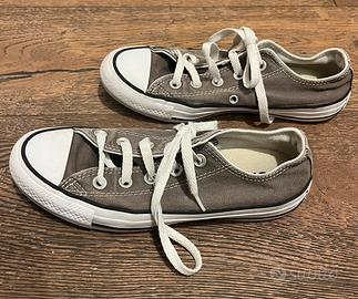 Scarpe Converse Chuck Taylor basse in tela grigia, perfette per un look casual. Taglia 36 (EU), ideali per bambina o ragazza con piedi piccoli. Usate ma in buone condizioni generali, con qualche segno d’usura normale sulla tela e suola. Dettagli prodotto •Modello: Converse basse classiche •Colore: Grigio con lacci bianchi •Taglia: 36 (come da foto) •Stato: Buone condizioni, lavabili a mano per rinfrescarle[wallapop] Condizioni e usura •Tela grigia leggermente sbiadita in alcuni punti •Suola integra, con segni di camminata normale •Interni puliti, comode da indossare