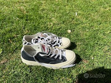 Scarpe converse all star lepardate e nere basse numero 36. Praticamente nuove indossate una sola volta. Vendo causa numero troppo piccolo.