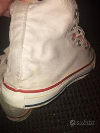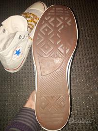 Vendo come da foto, scarpe originali "CONVERSE ALL STAR CHUCK TAYLOR" anni '90 con Lacci personalizzati (da sostituire a proprio piacimento ed aggiungere delle solette nuove)