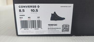 Converse All Star Chuck Taylor colore nero, tessuto pelle, misura 42. Nuove con scatola originale.