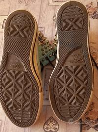 Converse All Star alte in tela, colore verde acqua con brillantini. Sono usate, ma ancora in buone condizioni.