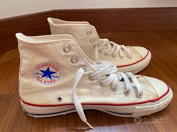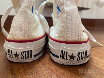 Converse All Star made in USA Misura 7 e 1/2 Tela color avorio Presenta linea giallo scuro in corrispondenza profilo gomma come da foto