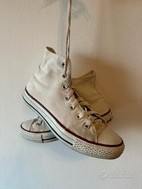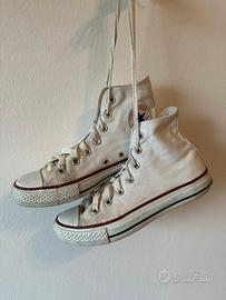 Converse modello All Star molto usate, in alcuni punti sono state incollate, numero 37.5 bianche