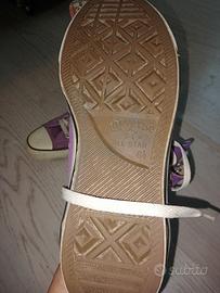 vendo scarpe all star converse originali alte (metà polpaccio) di colore viola con interni scozzesi. modello estremamente raro. numero 38,5. usate ma ancora in ottime condizioni.