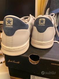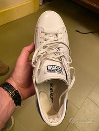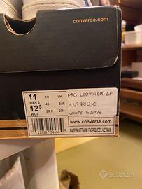 Converse All Star LP praticamente nuove, solo provate in casa e poi riposte perche troppo grandi, colore white dust con tomaia in pelle nr 45.