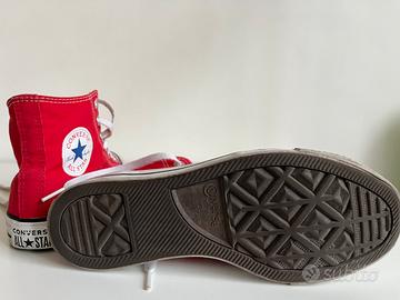 Converse All Star 37.5, originali, colore rosso, come nuove per immediato cambio taglia (si può vedere dalla foto l’interno perfetto), pagate 75 euro vendo a 10 euro.