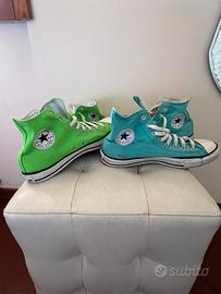 Vendo 2 paia Converse All star Alte colore VERDE FLUO bellissimo ed AZZURRO CIELO.