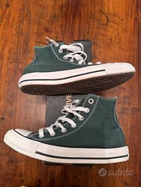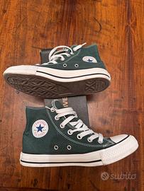 Scarpe Converse All Star, alte e di colore verde scuro. In ottime condizioni in quanto utilizzate 3 volte.