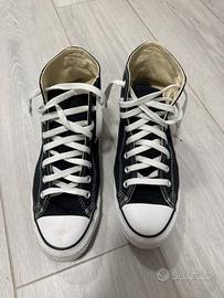 Vendo intramontabili Converse Chuck Taylor All Star modello High (alte) in colorazione nera. Un pezzo iconico che non passa mai di moda, perfetto per ogni outfit, dal casual al vintage.