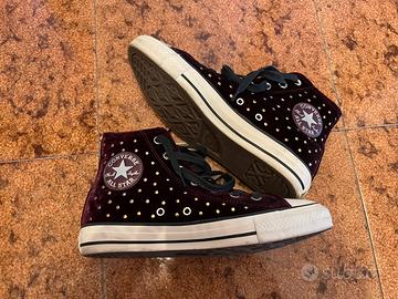 Converse bordeaux da donna in velluto con piccole borchiette, numero 39, usate una sola volta quindi come nuove.
