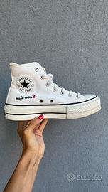 Converse bianche alte con para e dettagli sui lati