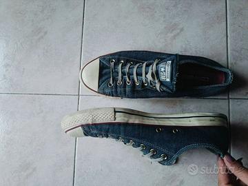 Converse blu jeans basse tg 44 comode casual street Sneakers Converse All Star basse in tessuto blu denim, modello unisex comodo e versatile 👟 Perfette per look casual e street, si abbinano facilmente con jeans, pantaloni o outfit sportivi. 📏 Taglia: 44 EU (10 UK – 28,5 cm) 🎨 Colore: blu denim effetto jeans Dettagli: • Modello basso classico Converse • Chiusura con lacci • Suola in gomma resistente • Interno confortevole Condizioni: Usate ma ancora in buone condizioni. #converse #allstar #sneakers #unisex #scarpe #denim #blu #streetwear #vinteditalia #secondhand