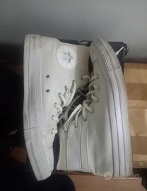 Per inutilizzo vendo Converse da donna con segni di usura ma in buono stato come da foto. Color bianco e panna in tela ed ecopelle. Misura 37.5