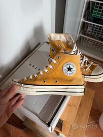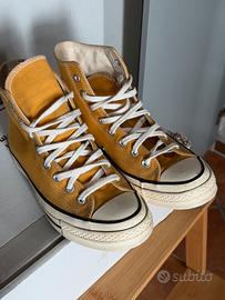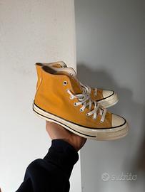 Converse chuck 70 high top gialle, originalissime ed in ottime condizioni (usate pochissime volte). Le vendo a malincuore perché mi vanno piccole.