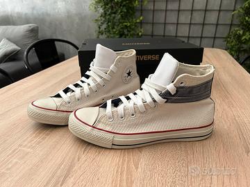 Vendo Converse Chuck Taylor All Star colore bianco e blu con finiture jeans. Tenute in buone condizioni. Taglia 41. Vendo causa inutilizzo.