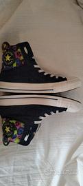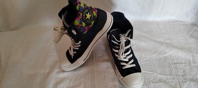 Rarissimo paio di Converse Chuck Taylor All Star modello "Double Flap" (doppia linguetta/risvolto). Un pezzo d'archivio dei primi anni 2010 (circa 2012-2014), ormai introvabile in queste condizioni. Non è una riedizione moderna ma un pezzo vintage originale dell' anno 2010 conservato in modo maniacale. Prodotte a Maggio 2010 (Codice SKU 118872) Design Unico: Esterno in robusto tessuto Denim blu scuro con cuciture a contrasto.Condizioni: Eccellenti.La gomma è bianca e integra, il logo posteriore "All Star" sul tallone è perfetto e non consumato. Tessuto denim senza macchie o sbiaditure.Taglia: 38 EU (5.5 UK / 7.5 US Women / 24.5 CM). Dettagli: Doppi occhielli per personalizzare l'allacciatura, patch classica con stella gialla sulla parte interna. Brand: Converse All Star Modello: High Top Double Flap / Double Tongue Collezione: Archivio 2012-2014 Materiale: Canvas Denim / Tessuto Colore: Dark Blue Denim / Multi-Neon Leopard Suola: Gomma vulcanizzata (Standard) Stile: Perfetto per amanti del look Y2K, Indie Sleaze e collezionisti di edizioni limitate Converse.Rare Converse Chuck Taylor All Star "Double Flap" Edition. Converse Chuck Taylor All Star "Double Flap" Edition.