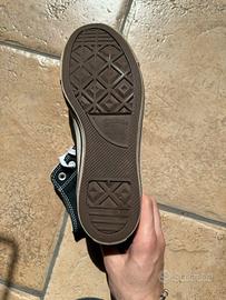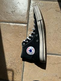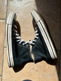 Le scarpe sono in buone condizioni generali, la tela è integra e il logo laterale è perfettamente conservato. Presentano i normali segni di utilizzo sulla gomma bianca e sulla suola, che conferiscono il tipico look "vissuto" di questo modello. Pulite e pronte all'uso.