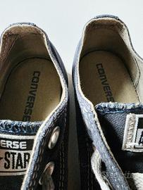 Vendo paio di autentiche scarpe Converse Chuck Taylor All Star Low Top (basse) in tela blu navy, presentano una bellissima patina "vissuta" sfumata in un bellissimo indaco-lavanda, che conferisce loro un aspetto vintage inimitabile in ottimo stato con loghi sulla linguetta perfettamente leggibili, misura 37,5 non sono nuove, sono AUTENTICHE