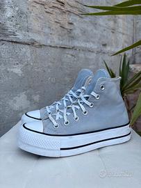 💫 Converse Chuck Taylor All Star Platform grigie unisex, sneakers iconiche con suola platform bianca e tomaia in tela resistente. Design intramontabile perfetto come scarpe casual donna o scarpe streetwear.