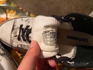 Vendo Converse originali basse in una bellissima tonalità grigio antracite. A differenza del modello standard, queste presentano un tessuto leggermente più robusto e rifiniture curate. • Tomaia: Tela grigio scuro, molto resistente e versatile per ogni outfit. • Suola: In gomma bianca con la classica riga nera, battistrada in buone condizioni. • Lacci: Originali bianchi. Le scarpe sono usate ma ben conservate. La gomma è stata pulita e non presenta tagli profondi. La tela è integra e il colore è uniforme. L'etichetta interna è presente e leggibile.