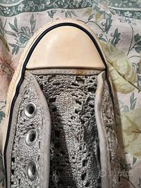 Converse da donna, basse in pizzo macramè argento.