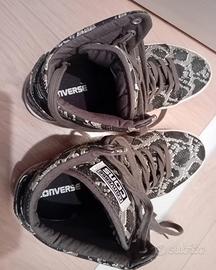 Converse originali (loghi interni ed esterni come da foto) fantasia pelle serpente nei toni del verde e del nero.Numero 41.Perfette usate pochissimo.Senza scatola.