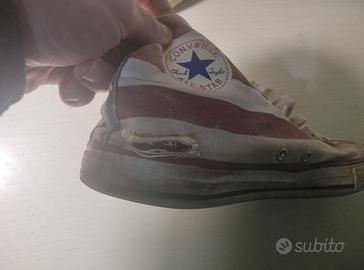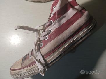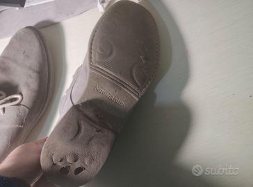 Vendo due paia di scarpe a prezzo simbolico. Le scarpe a stivaletto Nero Giardini sono realizzate in vero camoscio e sono taglia 43 , l' unico difetto lo hanno sulla parte del tacco come si può vedere in foto . La scarpa sinistra Converse All Star invece , presenta un piccolo taglio anche questo si può vedere nell' immagine. ( Converse taglia 42).Queste due paia di scarpe possono essere un' occasione per chi cerca materiali da riciclo oppure per coloro che sanno ripararle per dare loro nuova vita.