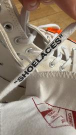 Vendo converse Off White in ottime condizioni , taglia 44, con tag e box originali off White , vendo per inutilizzo perché ho troppe paia di scarpe e non le sto indossando recentemente