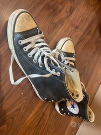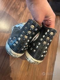 3 paia di Converse. Bianca e carta da zucchero in cotone. Nera pelle personalizzata con borchie. Numero 39.5