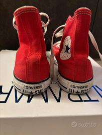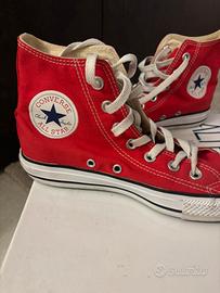 vendo converse all star rosse utilizzate massimo due volte, la gomma si può pulire. La suola è perfetta e anche l'interno. Sul sito costano nuove 75€ e le vendo a meno della metà solo perché non ho la scatola, ma spedisco lo stesso in scatola per scarpe. Numero 37