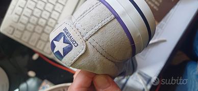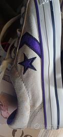 Scarpa tennis color buanco/crema e viola con qualche macchietta