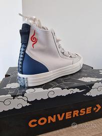 Converse dà vita all'universo di NARUTO SHIPPUDEN con una nuova Chuck Taylor All Star in edizione limitata. Il design personalizzato reinterpreta il classico originale con grafiche, colori e dettagli ispirati a Kakashi, come la stampa a tutta grandezza sul sottopiede, l'esclusiva grafica che si svela capovolgendo il rivestimento sulla linguetta, e il logo Star jewel personalizzato sulla patch Chuck.