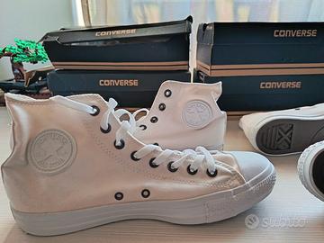converse AllStar nuove 2 paia piede 44 2 paia piede 37 sia per uomo che donna colore bianco/sporco le scatole ottime condizioni tranne che una