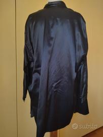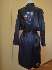 camicia da notte e kimono coordinati, camicia da notte con bottoni sul davanti e tasca ricamata con amorino, kimono con scollo a scialle, Cupido sulla schiena e cintura, nero, cotone sulla pelle e viscosa effetto seta all'esterno, ottima qualità, taglia M mai usati