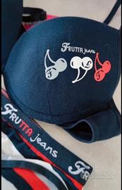 Coordinato intimo originale Frutta Jeans composto da reggiseno con ferretto e coppe imbottite e slip. Taglia IT 2. Articolo nuovo e originale