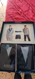 Vendo coordinato da uomo in raso pigiama + vestaglia (5 pezzi) taglia 50 in raso. Nuovo, ancora inscatolato e con etichetta Ritiro Torre del greco Napoli centro Varcaturo