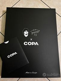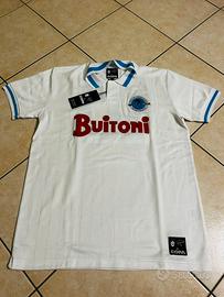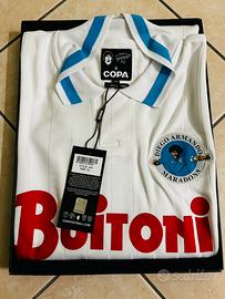 Maglia retrò da trasferta SSC Napoli x Copa Football, dedicata a un giocatore che non ha bisogno di presentazioni. Realizzata in 50% poliestere e 50% cotone, con materiali di qualità superiore rispetto alle classiche maglie da calcio: leggera, traspirante e ideale per l’estate (non fa sudare). Taglia: XL