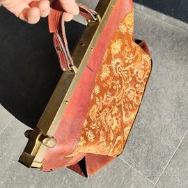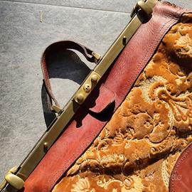 Vendo splendida coppia composta da borsone e cartella artigianali, realizzati in vero cuoio e tessuto damascato. Si tratta di pezzi unici, di produzione artigianale italiana, caratterizzati da: - inserti in pelle/cuio pieno fiore - tessuto vellutato damascato con motivi classici - chiusure e dettagli in ottone - lavorazione curata e solida, fatto a mano 🔸 Condizioni: buone, con normali segni del tempo che ne valorizzano il fascino vintage 🔸 Struttura: rigida e resistente, perfetta anche come oggetto di scena, arredamento o uso quotidiano distintivo 🔸 Stile: vintage, retrò, artigianale, boho, classico Dimensioni: Cartella 43x32 cm Borsone 60x40 cm Ideali per: amanti del vintage autentico uso come borsa da lavoro / cartella set fotografici, teatro, eventi complemento d’arredo originale --- Parole chiave: borsa vintage, cartella cuoio, borsa pelle artigianale, borsa retrò, borsa damascata, valigetta vintage, borsa anni 70 80, accessori vintage, borsa unica, handmade pelle.