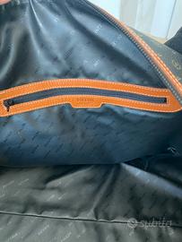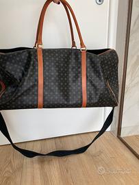 Pollini borsone grande in pelle e con tracolla. Logo classico, con manici e chiusura con cerniera. Come nuovo. -Misure Larghezza circa 56 Altezza circa 30